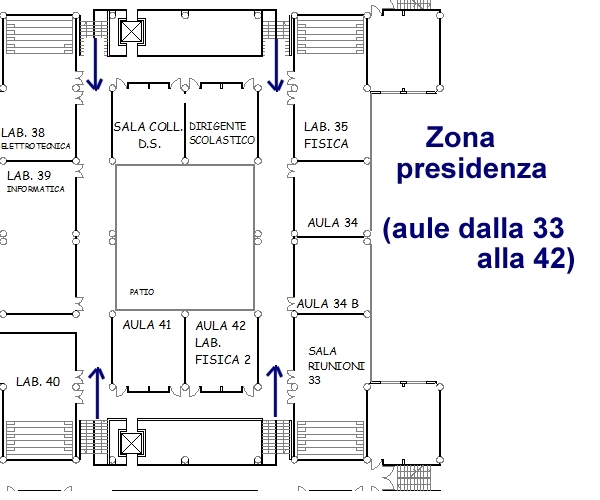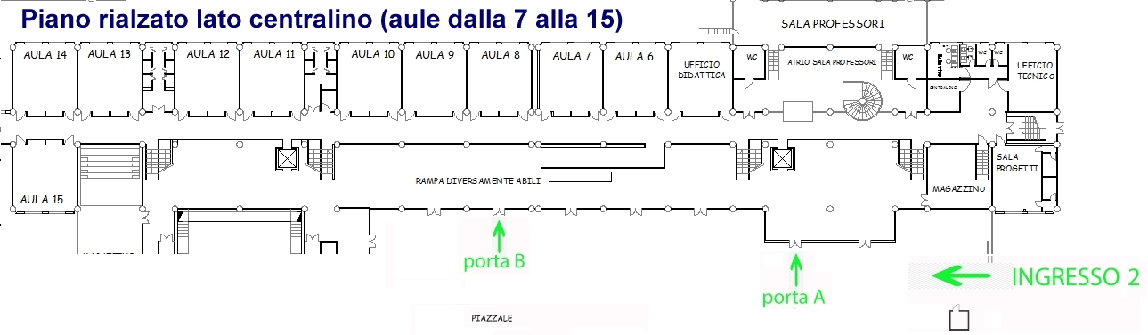 Sintesi accessi - Ingresso 1: Primo piano lato centralino - Ingresso 2: Primo rialzato lato centralino