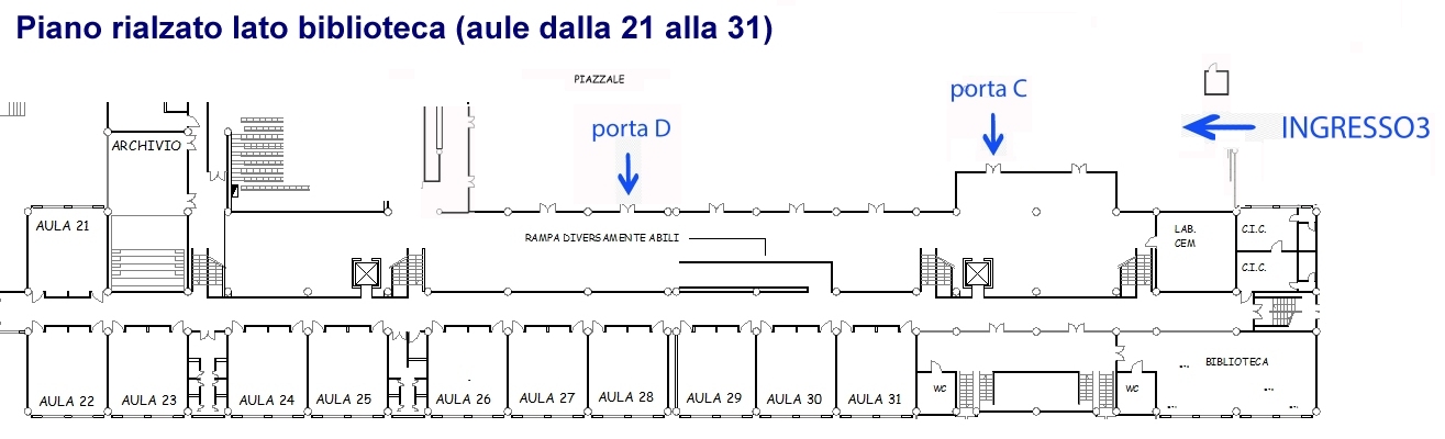 Ingresso 3: Primo piano lato biblioteca - Ingresso 4: Primo rialzato lato biblioteca