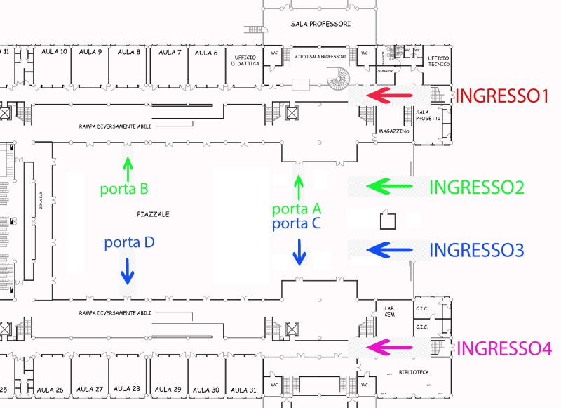 Piante esplicative con la posizione degli ingressi: